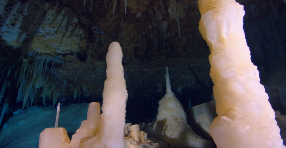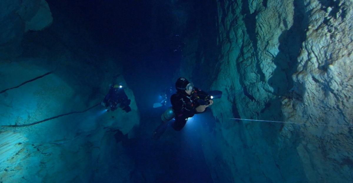 ดังนั้นสำหรับคนไม่มีประสบการณ์แต่ชอบดูถ้ำใต้น้ำแบบผม การดูภาพอยู่ที่บ้านคือทางเลือกหนึ่งที่ปลอดภัยครับ ซึ่งก็แน่นอนว่าผมดูสารคดีนี้แบบจุใจกันไป สารคดีก็นำเอาภาพถ้ำใต้น้ำมานำเสนอให้เราชม บอกตรงๆ ว่าสวยมากครับ บางส่วนก็ดูลึกลับ เต็มไปด้วยซอกหลืบมืดๆ แต่บางส่วนที่เป็นโถงกว้างๆ ก็ดูงดงามละลานตา ยิ่งตรงไหนสีของหินตัดกันนี่มันเป็นอะไรที่สุดยอดมากๆ จริงๆ ครับ