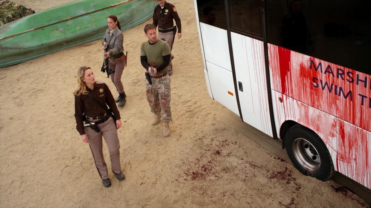 แต่มันก็ดันเกิดเรื่องครับ เมื่อประตูถูกเปิดไว้ และมีรถบัสทัศนศึกษาตรงเข้าไป งานนี้เหล่าวัยรุ่นก็เลยต้องเผชิญกับไอ้เข้ในแบล็คเลค ซึ่งหนึ่งในนั้นก็คือลูกสาาของนายอำเภอนั่นแหละ